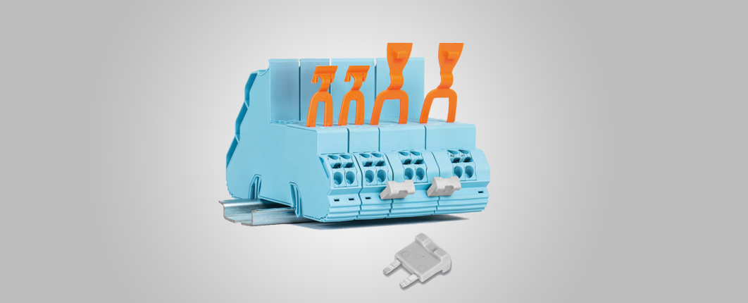Einheitliche 2- und 4-polige Potentialbrücker für den Hauptstromkreis. Der 4-fach Brücker ist konfigurierbar, die PIN-Belegung lässt sich kennzeichnen